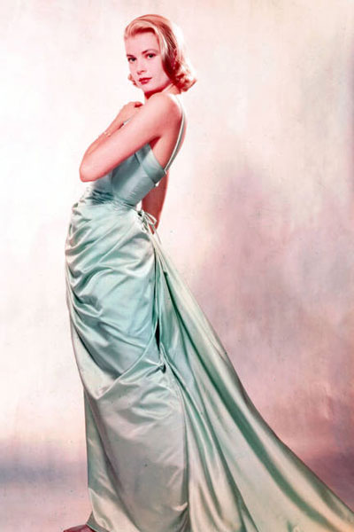 ترتدي فستان ازرق فاتح من تصميم إديث هيد في حفل توزيع جوائز الأوسكار لعام 1955 بدت غريس كيلي في قمة الاناقة الملكية.