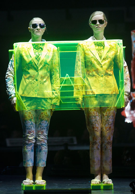 اقيم في ويلينغتون عاصمة نيوزيلاندا مطلع الأسبوع الجاري أغرب عرض للأزياء في العالم تحت عنوان "العرض العالمي للفنون الملبوسة" المصنوعة من المعادن على انواعها، حيث أدخل المصممون لهذه الأزياء الورق والنحاس والحديد وغيرها. وكانت هذه الازياء الغريبة التي ينشر موقع "شايف" مجموعة صور منها، على شكل فاكهة او نبات عباد الشمس، او على شكل مدينة ملاهي والتصاميم كثيرة ومتنوعة شاهدوها.