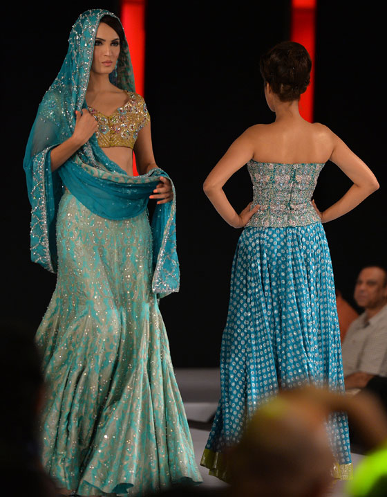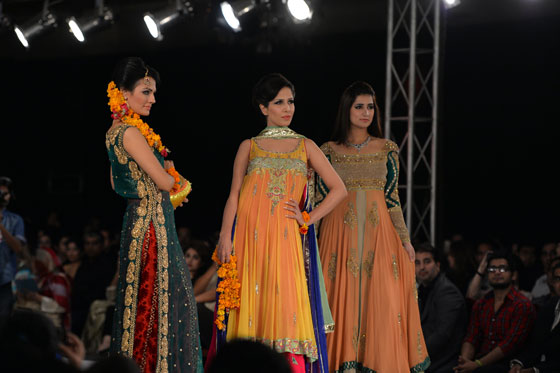 قدمت المصممة الباكستانية نافيد رانجاه عرضها لفساتين الزفاف المزينة بالتطريز التقليدي. في حين جمع مصمم آخر بين الألوان المشرقة وجودة الأقمشة التي تظهر مدى تطور فساتين الزفاف في هذا البلد. أما المصممة الباكستانية، سانا، فقالت: "قمت بعرض مجموعتي لفساتين الزفاف واستخدمت ألوانا كالذهبي، الأسود، الأحمر والبيج. لقد تطلب مني هذا العمل مجهودا كبيرا، و أنا سعيدة لأنه لقي استحسانا لدى الحضور".