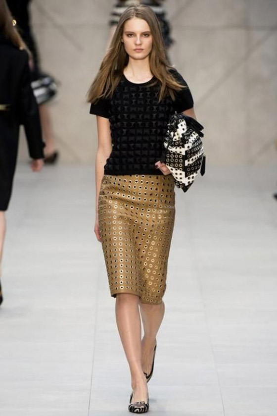 تميزت مجموعة "Burberry" لموسم خريف وشتاء 2013-2014 باستخدام جلود الحيوانات ونقشاتها. وتنوعت المجموعة ما بين التنانير، والبلوزات، والمعاطف والفساتين المميزة، مع الأحذية الأنيقة ذات الكعوب المتوسطة العلو.