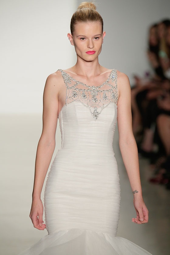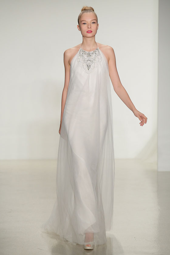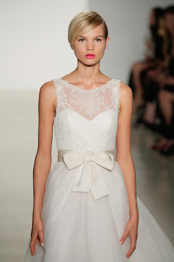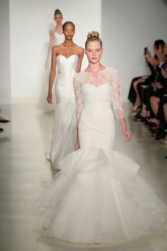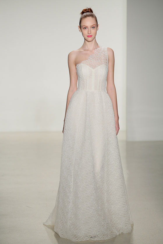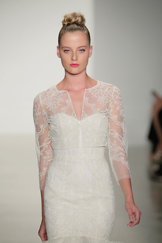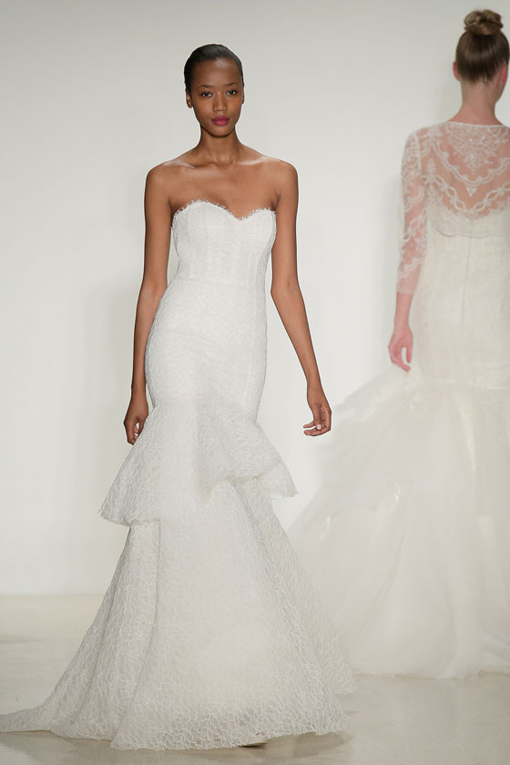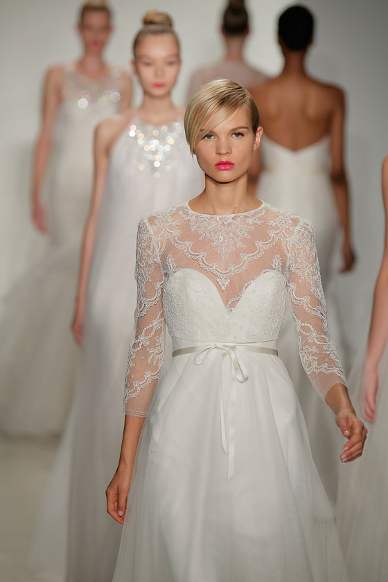 نجم فساتين الزفاف الدائم والكلاسيكي، الذي أثبت حضوره في اتجاهات الموضة للعام القادم بوجه عام، وفساتين الزفاف بشكل خاص، وتحديداً من خلال أسبوع نيويورك للموضة، الذي أفرد له مساحات واسعة، وظهر بوضوح من خلال مجموعة Amsale. وهو ما منح التصميمات بعداً ظلياً جميلاً، خاصة مع خطوط الرقبة المميزة والأكمام سواء كانت صغيرة، أو حتى غير موجودة. كما يساهم الدانتيل بشكل مميز، في إظهار العروس كملاك رقيق، بما يتناسب مع المناسبة الكبيرة، وهو من أفضل الخامات التي تبرز جمال الجسم، وتمنحك كل الرونق الذي تحتاجينه في ذلك اليوم.