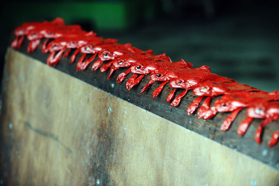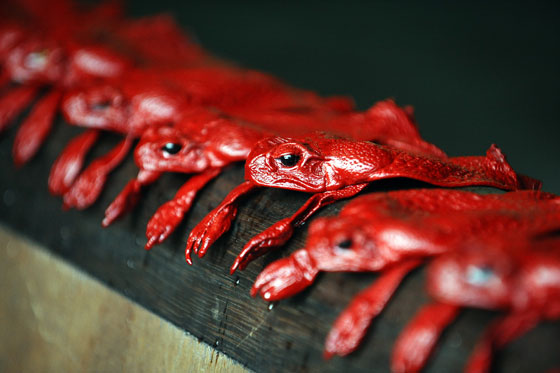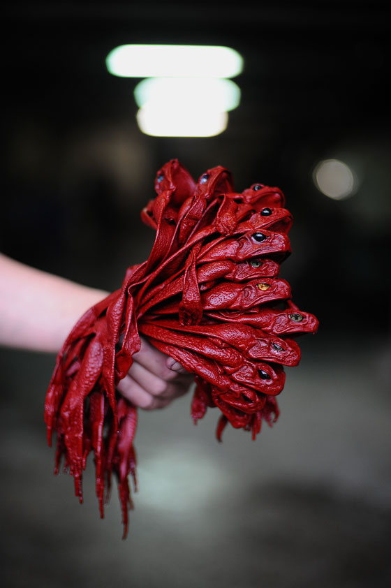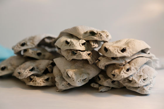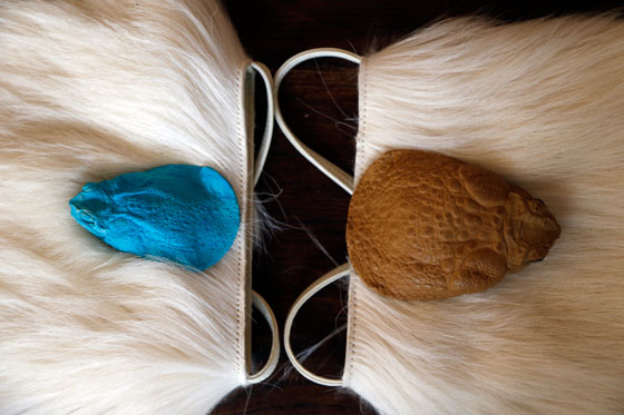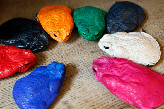 ومن المقرر أن تعرض تلك الحقائب في باريس للعام المقبل، وتتنوع أحجام الضفادع بين الكبيرة والصغيرة كما يتم تلوينها لتلائم كل أشكال الحقائب والمحافظ.