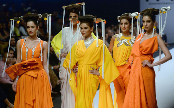 عرضت دار الأزياء الآسيوية في باكستان هذا الأسبوع تشكيلة جديدة من الأزياء الباكستانية وذلك في دار العرض الرئيسية في كراتشي، وتضمن العرض مجموعة من الأزياء المستوحاة من الزي التقليدي المحلي، مع تشكيلات مطرزة، ويلاحظ أن الألوان المستخدمة تدور حول الأصفر والذهبي والأحمر، فيما تم عرض تشكيلة مميزة من فساتين الأفراح..