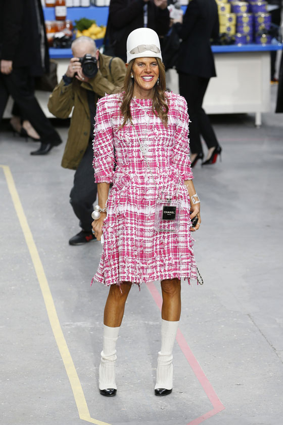وظهر في أحد أقسام السوبرماركت، المصمم كارل لاجيرفيلد بصحبة عارضة الأزياء كارا ديليفينغ، وهي ترتدي لباسا ورديا بينما كان هو يرتدي لباسا أسود ونظارات أكثر سوادا. كما ظهرت النجمة ريهانا وهي تلاعب كلبا، وفي صورة أخرى كانت تركب عربة تسوق برفقة العارضة كارا ديليفينغ. وفي زوايا السوبرماركت أمكن مشاهدة زوار عرض "شانيل" للألبسة، وهم يتابعون بدهشة حركة العارضات بين زوايا "السوبرماركت"، في مشهد أقرب إلى الواقع اليومي والأبعد عن أجواء صالونات العرض التقليدية.