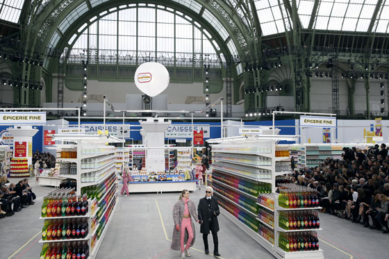دعا أحد عمالقة الموضة في العالم معجبيه إلى تجربة تقديم عرض "شانيل" لأحدث الألبسة الخريفية الشتوية لموسم 2014-2015 في مركز تسوق كبير في باريس. وبالفعل حوّل المصمم كارل لاجيرفيلد منصة العرض المعروفة باسم "القصر الكبير" إلى سوبرماركت حقيقية.