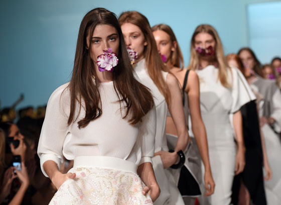 تمتاز عروض الأزياء بالغرابة والجديد في الألوان أو في الديكور، لكن ظهور عارضات الأزياء وهن يحملن الزهور في أفواههن بدلاً من الإمساك بها في أيديهن، ذلك ما قدّمه المصمم الأسترالي Tony Maticevski في أسبوع الموضة في سيدني بأستراليا.