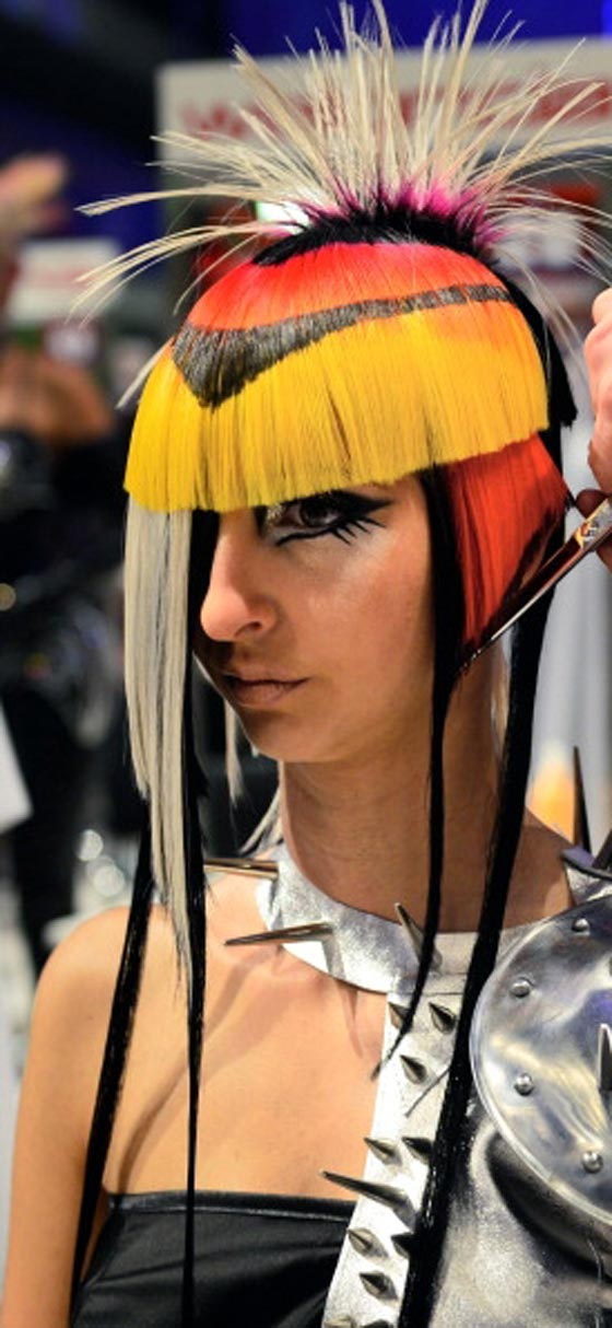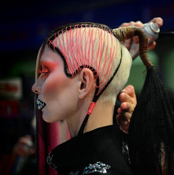 وتدور فكرة المسابقة الرئيسية حول تصفيفات شعر غريبة جنونية لكن التسريحة لا تكتمل ولا يفوز مصفف الشعر الذي ابدعها الا اذا حقق التكامل والتناسب لعارضة الازياء ووفق بين تسريحة الشعر والزي الذي يختاره لها ليناسب التصفيفة الجنونية والشكل العام للعارضة مع المكياج والاكسسوارات. اليكم الصور اعزاءنا قراء موقع شايف مع اننا لا نعلم ان كانت قارئاتنا العزيزات يملكن الجرأة لتجريب هذه الصرعات الجنونية.
