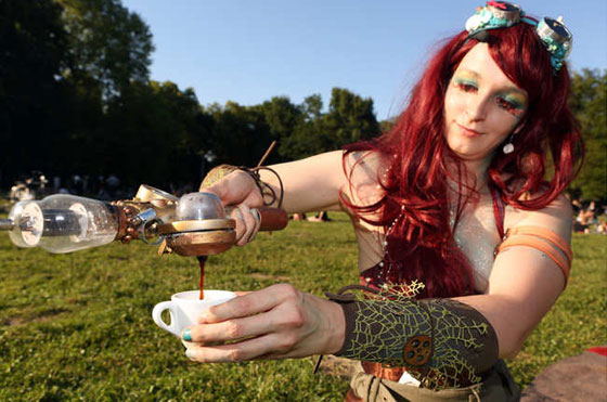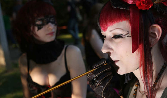 الألمان يحتفون بالموسيقى والتراث القوطي بمهرجان سنوي، في 6 يونيو/ حزيران، كان المشهد بديعا للملابس والمكياج الذي يحتاج إلى وقت طويل لتجهيزة بهذه الصورة.