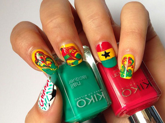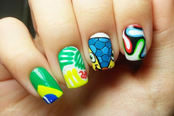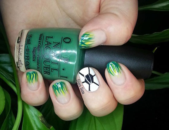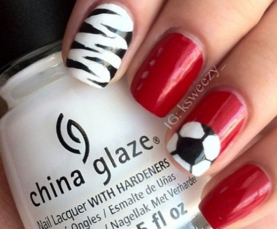 مع بداية كأس العالم لعام 2014 تحتاج الكثير من السيدات وخاصةً عاشقات كرة القدم لإطلالة مختلفة، إطلالة بنكهة الساحرة المستديرة. ما رأيك بالحصول على تصميمات طلاء الأظافر المستوحى من كأس العالم وكرة القدم مع الأفكار الجذابة التي يمكن تنفيذها في المنزل للاحتفال بكاس العالم بطريقة أنثوية مع أصدقائك. اختاري تصميم الفريق الذي تشجعيه أو التصميم الذي تفضلينه واحتفلي بكاس العالم على طريقتكِ.