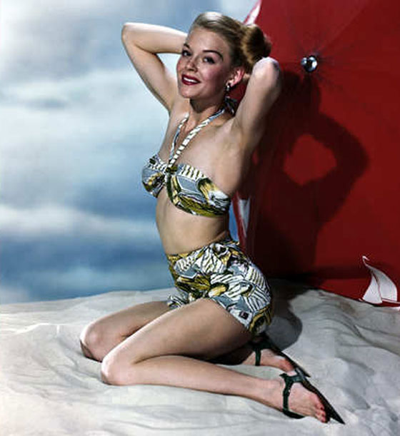 الممثلة الأمريكية بيتي غرابل ترتدي ثوب السباحة في العام 1943.