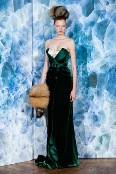 إخترنا لك من هذه المجموعة فستانين مميزين، الأول باللون القرمزي الفاتح المتدرج، وهو عاري الكتفين ومنفوش، من دون الكثير من التفاصيل، أما الثاني فهو من المخمل الأخضر الداكن المطعم بجزء ذهبي عند الصدر، ينسدل برقة على الجسم، ومزين بحزام من نفس لون وقماش الفستان.