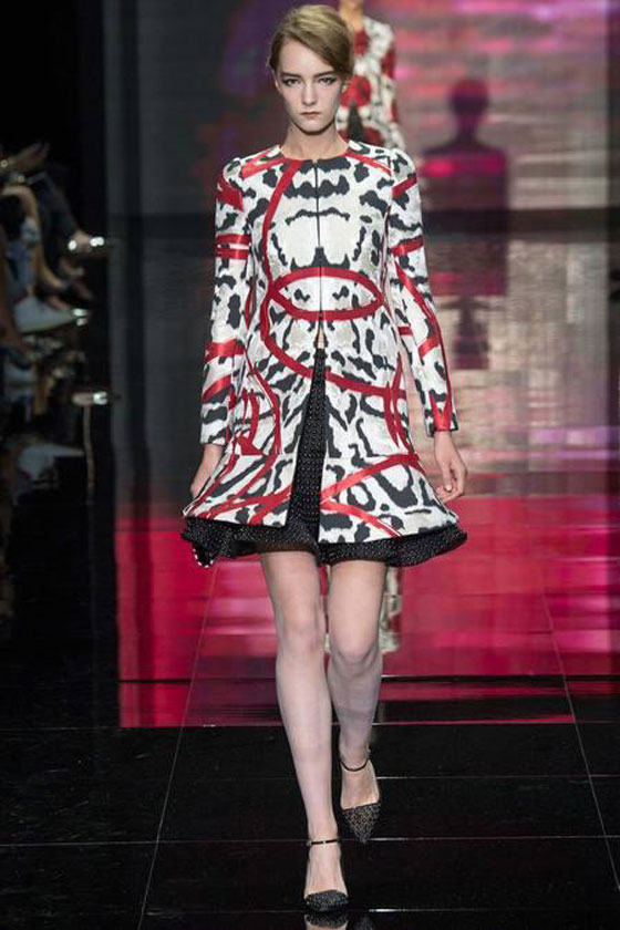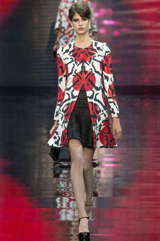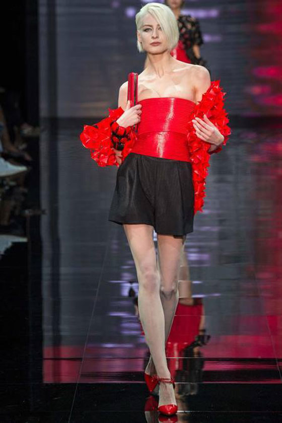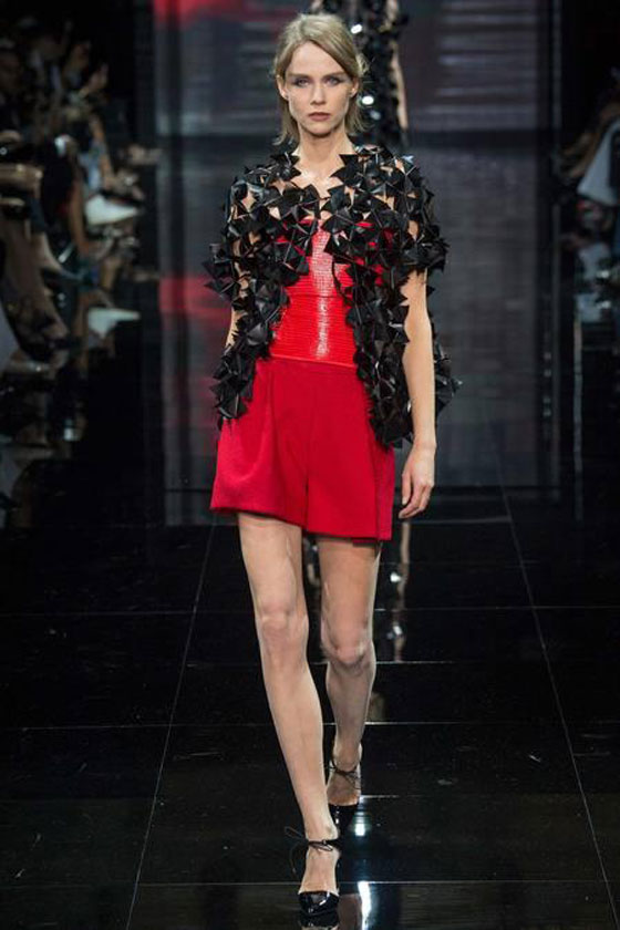 أطلق المصمم جورجيو أرماني مجموعته لخريف شتاء 2014/2015 من Armani Privé ضمن فعاليات أسبوع الموضة في باريس. سيطرت على المجموعة صفتا الرقي والأناقة، فمنها المناسبة للمرأة العاملة مثل البدلات الرسمية، واخرى كالتنورة مع السترات بموضة الـRUFFELS ،والسترات القصيرة ومنها الواسعة الأكمام .