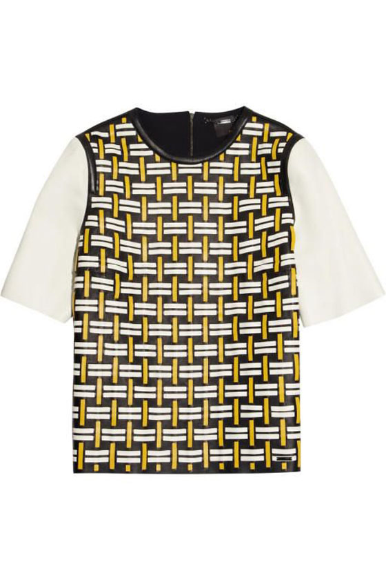 اختاري تنورة قصيرة من الجلد مع توب بطبعة مرحة لإطلالة مميزة