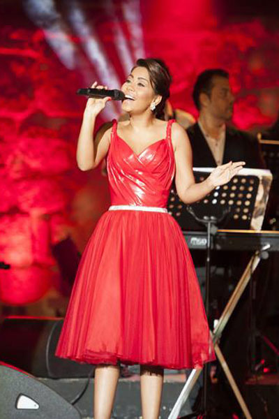 النجمة المصرية شيرين عبد الوهاب إرتدت فستان أحمر جلد من توقيع نيكولا جبران