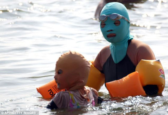 "فايسكيني" أو "وجهكيني" أو "بيكيني الوجه" اختراع صيني جديد، يحمي من أشعة الشمس الضارة ومن لسعات قناديل البحر التي تكثر في الصيف. وبدأ يشهد رواجًا كبيرًا لا سيما على شاطئ بيتشغوري في مدينة تشينغداو شرق الصين. هذا القناع الحديث متوافر بألوان وأشكال كثيرة، يباع مع ملابس البحر. تم تصميمه ليغطي الرأس والرقبة حتى عظام الترقوة. وهو مزود بفتحتين للعينين، وفتحتين للأنف والفم، الأمر الذي يضمن التغطية التامة لمعظم مساحة الوجه لمنع تغلغل الاشعة ما فوق البنفسجية أو لسعات قناديل البحر. ويحقق "بيكيني الوجه" مبيعات هائلة في الصين، يتراوح ثمنه من 15 إلى 25 يوان (نحو 2 جنيه استرليني).