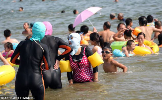 "فايسكيني" بدأ يغزو الشواطئ الصينية، وصار مشهدًا مألوفًا، إذ يشهد رواجًا بين الكثير من السيدات اللواتي يحرصن على الحفاظ على بياض بشرتهن، من دون أن يمنعهن ذلك من ارتياد الشاطئ. وسائل الإعلام الاجتماعية تلقفت هذه الظاهرة الجديدة، لكن المستخدمين انقسموا بين مؤيد لهذا الاختراع الجديد والمفيد، وبين قسم آخر سخر من الرواد الذين يغطون وجوههم بأقنعة سبايدرمان. وخلال يومين فقط، شهد موقع ويبو، الشبيه بموقع تويتر، للرسائل القصيرة ما يقرب من 12 مليون تعليق على فايسكيني. وقال أحدهم: "المرأة الصينية في قلب الموضة العالمية"، في حين علّق أحدهم ساخراً: "النساء يبدين وكأنهن مجموعة لصوص يردن سرقة أحد المصارف".