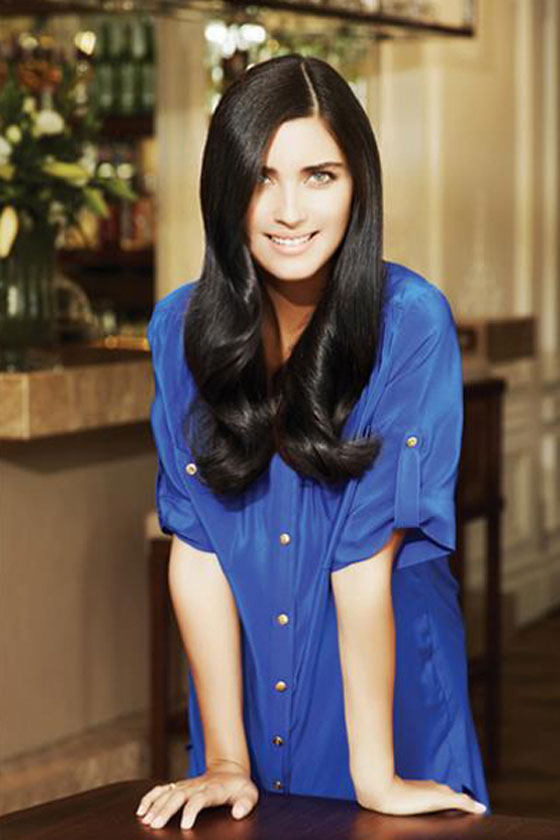 وأختارت البلوزة الزرقاء الحرير لتصوير إحدى الدعايات.