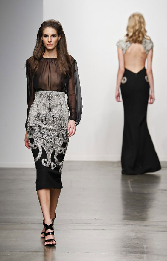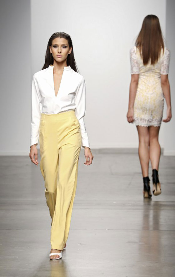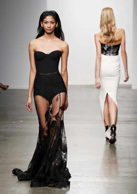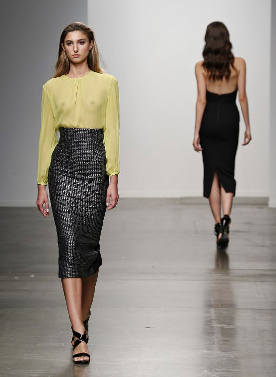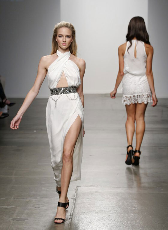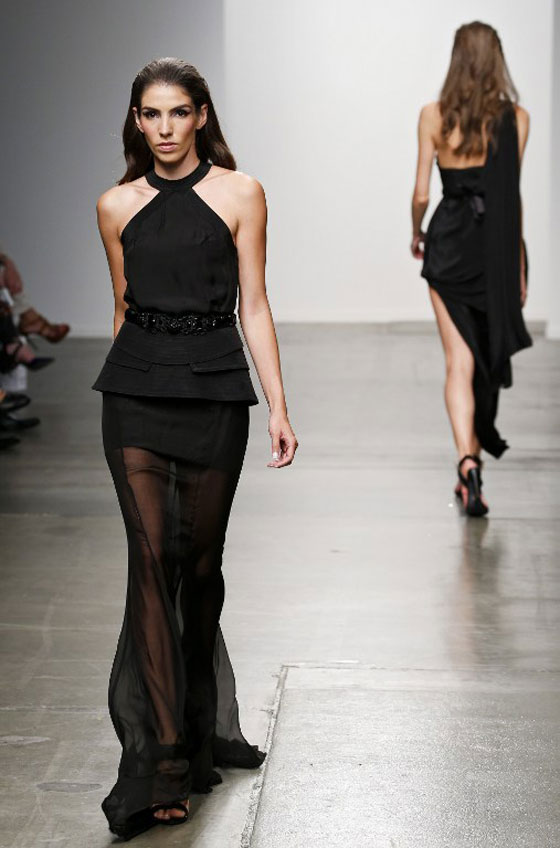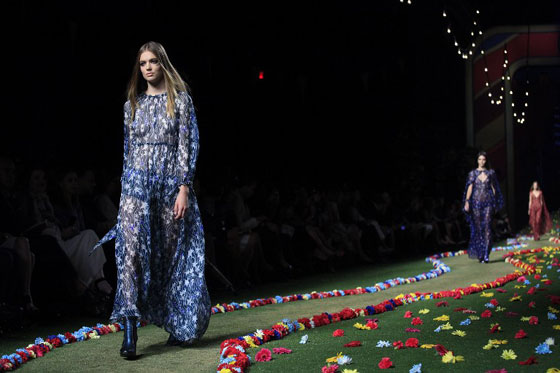 هيمنت الأقمشة الشفافة والفساتين عارية الظهر والسراويل الفضفاضة والتنانير المفتوحة من الجانبين والأثواب فاتحة اللون على المجموعات التي يقدمها مصممو الأزياء لموسم ربيع 2015 خلال أسبوع الموضة في نيويورك الذي انطلق يوم الخميس الماضي. ومزج المصمم التايواني الكندي "جيسون وو" مصمم الأزياء المفضل لدى السيدة الأمريكية الأولى ميشيل أوباما اللون الأزرق الداكن مع درجات الأخضر في أقمشة لامعة في مجموعته لملابس النساء والملابس الرياضية التي عرضها في وسط مانهاتن.
