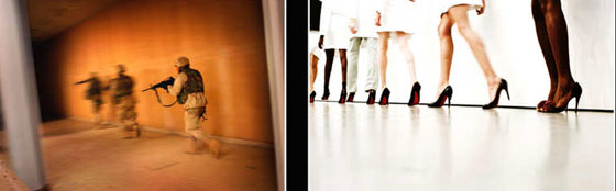 جنود أمريكيون في العراق عام 2003، وعارضات يتوجهن إلى ممر الأزياء في نيويورك عام 2008.