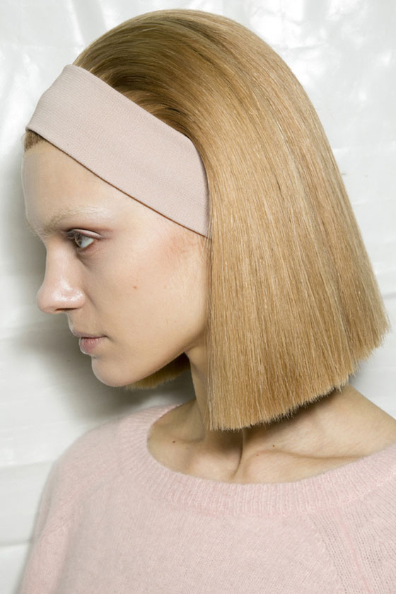 - الشعر جاء مشدوداً على شكل قوس عند الجبين لدى Dona Karan، وهي تسريحة مستوحاة من موضة التسعينيّات.