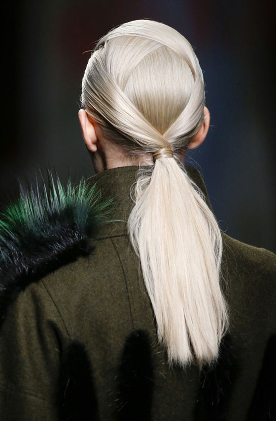 - تسريحة ذيل الحصان جاءت ملفوفة على شكل أوراق الأوريغامي اليابانيّة لدى Fendi.