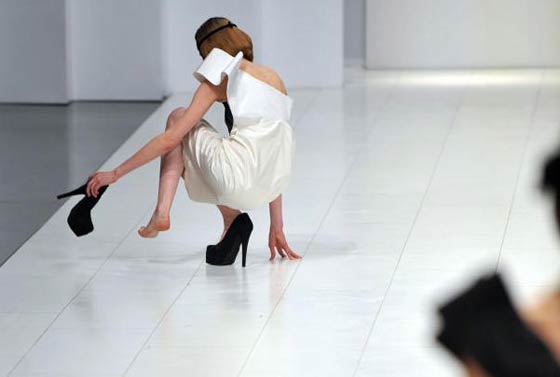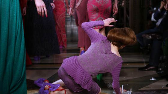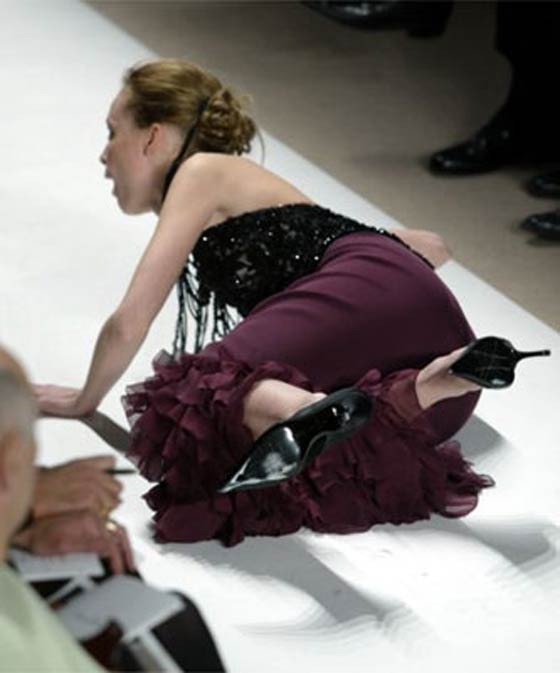 تظهر عارضات الازياء امامنا على منصة العرض باطلالة مثالية من ناحية الملابس الانيقة والراقية والمكياج والمشية الرشيقة المتزنة. ولكن حتى عارضات الازياء العالميات المثاليات قد يتعرضن لهفوات تؤدي الى تعثرهن وسقوطهن على ارض المنصة، في موقف يكون عادة محرج للغاية ومربك جدا. وتتغير بهذه المواقف نظرتنا التي كنا نرى فيها عارضة الازياء "سوبر وومان" معصومة عن الخطأ او السقوط او التعثر...