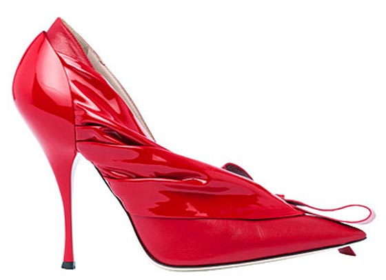 حذاء أحمر بتصميم مبتكر بالجلد اللمّاع من ميو ميو Miu Miu