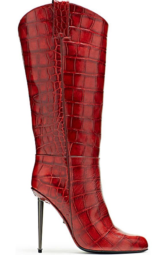 حذاء أحمر برقبة طويلة مزين بالجلد المضلّع من توم فورد Tom Ford.