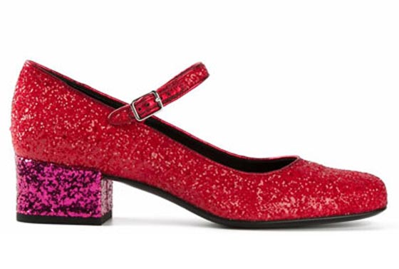 حذاء يشع بريقاً بالغليتر الأحمر من توقيع ايف سان لوران Yves Saint Laurent.