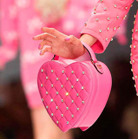 شنطة جلد على هيئة قلب باللون الوردي من موسكينو Moschino.