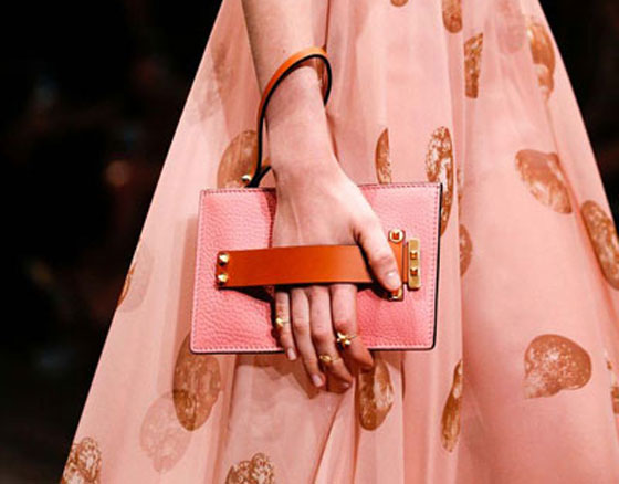 شنطة كلتش وردية بحجم صغير من توقيع فالنتينو Valentino.