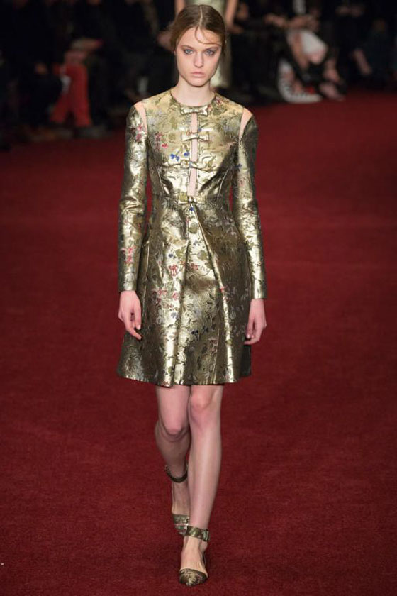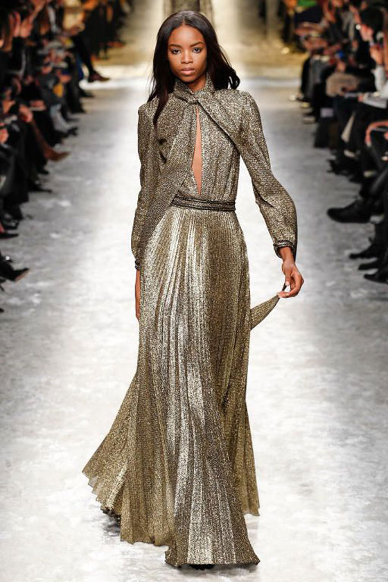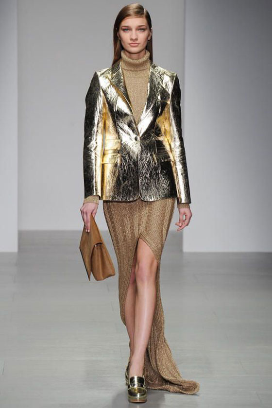 الذهبي لون الفخامة والتألق والإشراق. وعندما يريد الناس وصف شيء جميل وساطع، يقولون عنه: "كالذهب". وموضة موسم شتاء 2014-2015 كانت حافلة بتصميمات مميّزة من هذا اللون المعدنيّ، فيما اختاره كثير من مصمّمي الأزياء كلون أساسيّ في مجموعاتهم.