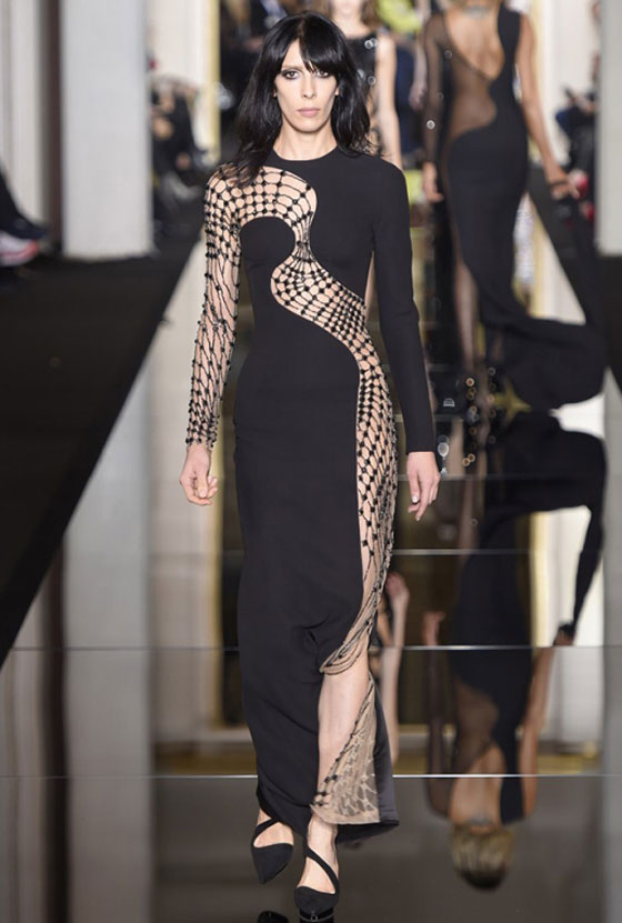 افتتحت دار Versace مساء أمس الاول الأحد أول عروض أسبوع باريس للخياطة الراقية، حيث تمّ تقديم مجموعة أزياء Atelier Versace للربيع والصيف المقبلين. من جماليّة منحنيات جسم المرأة انطلقت مصممة الدار Donatella Versace لتقدّم مجموعة من التصاميم خلت من الخطوط المستقيمة واعتمدت لعبة التعرّجات كأساس لإطلالات بدت كأنها منحوتة على أجسام العارضات.