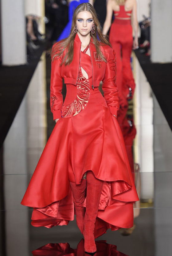 افتُتح العرض بإطلالات سوداء عرّفت عن الرؤية الأساسيّة للمجموعة، ثمّ تلتها أزياء بالأبيض والأحمر والأزرق الملكي. وهي الألوان الأربعة التي تمّ اعتمادها، كلاً بمفردها ودون أي اختلاط فيما بينها. لفتنا في هذا العرض مجموعة من الأثواب الطويلة التي برعت في إبراز مفاتن العارضات، بالإضافة إلى الإطلالات التي تميّزت بتنانيرها الواسعة التي سطّرتها أحزمة عريضة عند الخصر والأثواب الضيّقة التي تناسقت مع أحذية عالية الساق تزيّنت بالتطريز نفسه الذي زيّن الأزياء.