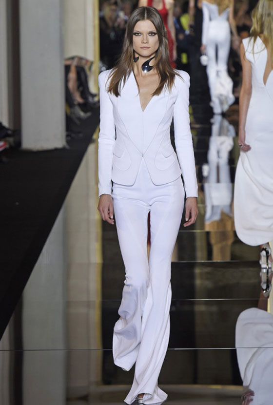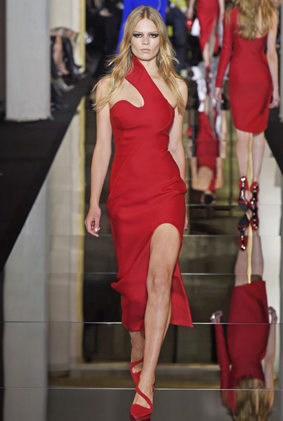 الخطوط المتعرّجة لم تزيّن فقط الأزياء في عرض Atelier Versace ولكنّها اعتمدت أيضاً في تصاميم الأحذية والعقود التي زيّنت الأعناق. وقد كانت النجمة كايت هادسون أول من ارتدى من أزياء هذه المجموعة إذ جلست في الصفوف الأماميّة للعرض برفقة والدتها الممثلة غولدي هاون. وقد اختارت هادسون ثوباً قصيراً باللون الأحمر زيّنته التعرّجات وهو نفسه الذي ارتدته العارضة الشهيرة إيفا هيرزيغوفا خلال العرض ولكن بنسخته الطويلة.