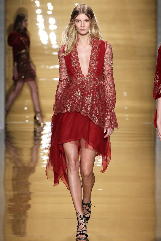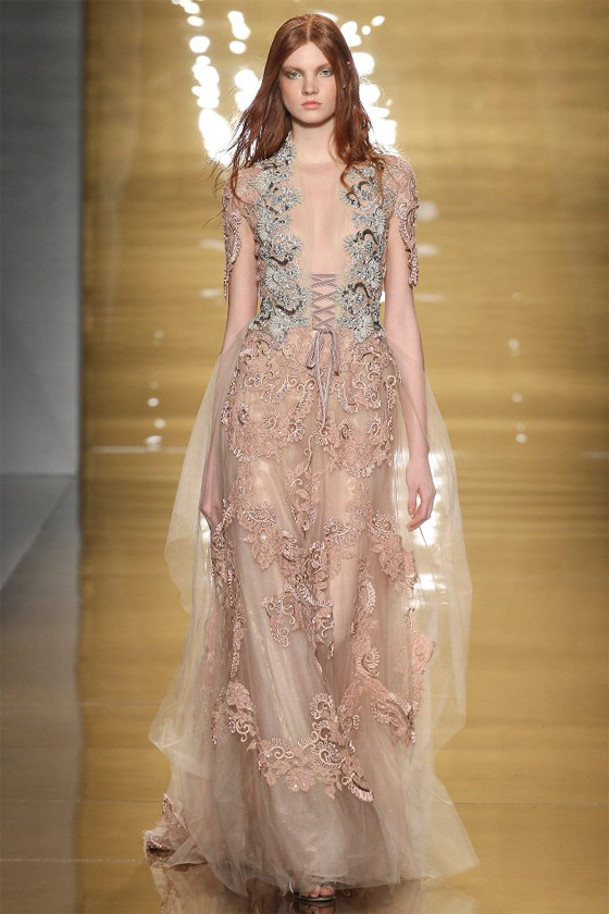 أما الأثواب الطويلة المصنوعة بمعظمها من الدانتيل أيضاً فأتقنت لعبة الشفافيّة، وتميّزت بتطريزها الغني الذي أضاف لمسة من الترف على الإطلالات.البيج، الوردي الفاتح، الأحمر، الأسود، البنفسجي والرمادي هي الألوان الطاغية على هذه المجموعة التي تزيّنت بمعظمها باللمسات الفضية والذهبية، جاعلةً من استعمال الأكسسوار معها أمراً غير ضروري. تعرّفي معنا فيما يلي على ما قدّمته ريم عكرا من تصاميم لخريف وشتاء 2015.