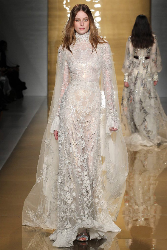 عارضات ريم عكرا تحوّلن إلى أميرات عصريات ليثبتن لكل امرأة أنها تستطيع أن تكون أميرة بأناقتها وسحرها. أثوابهن القصيرة التي افتتحت العرض تزيّنت ببريق التطريز الغني المستوحى من طراز الباروك. وقد دخلت عليها لمسات من الجلد والفرو لتضيف أناقة راقية إلى أنوثة الدانتيل الشفّاف.