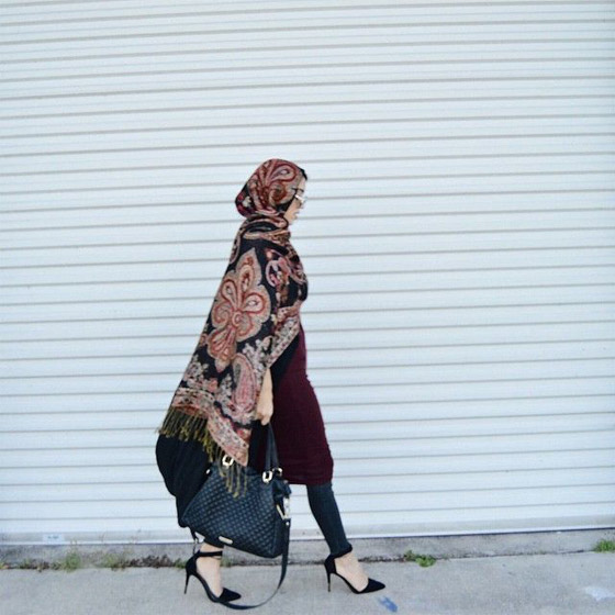 الحجاب "الكبير" والطويل مع بنطلون برغندي