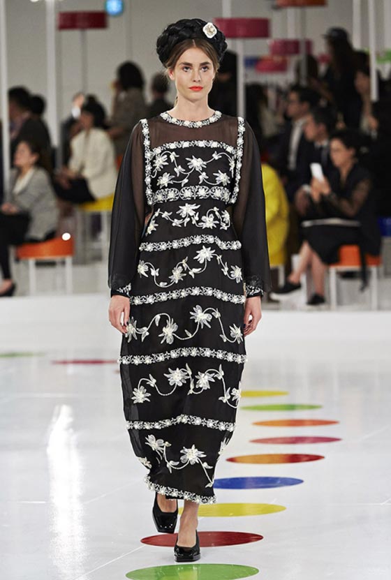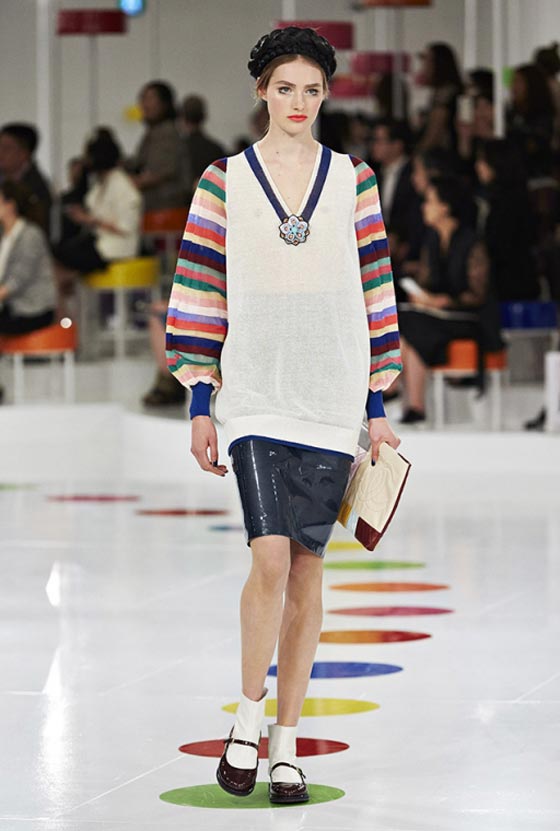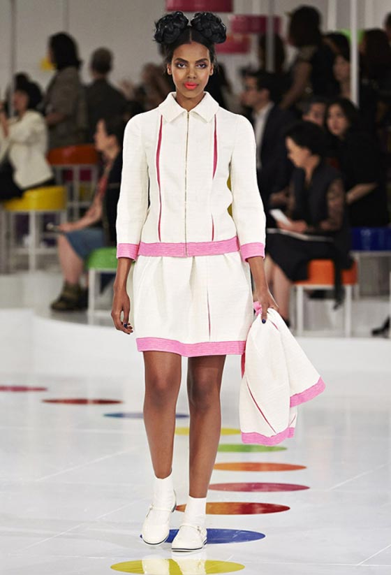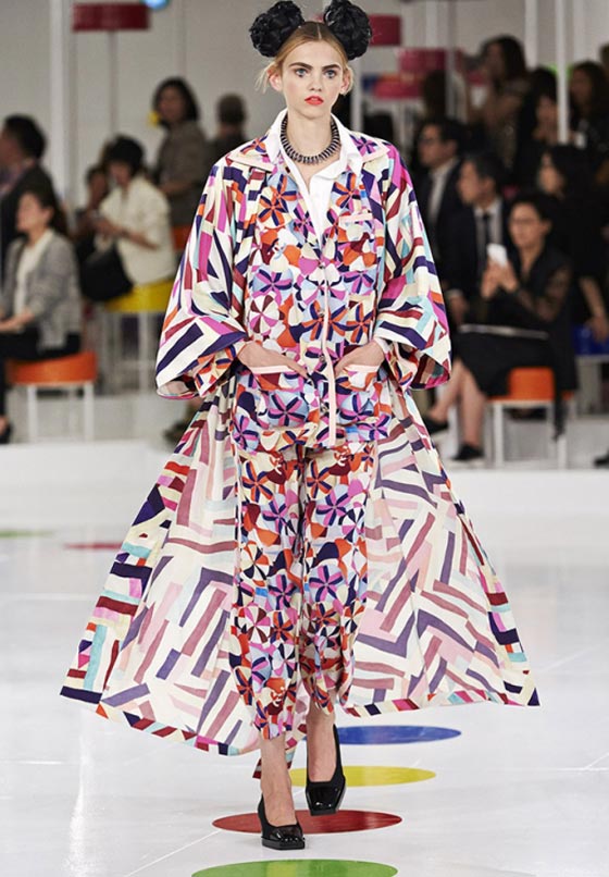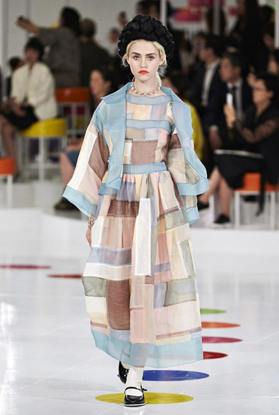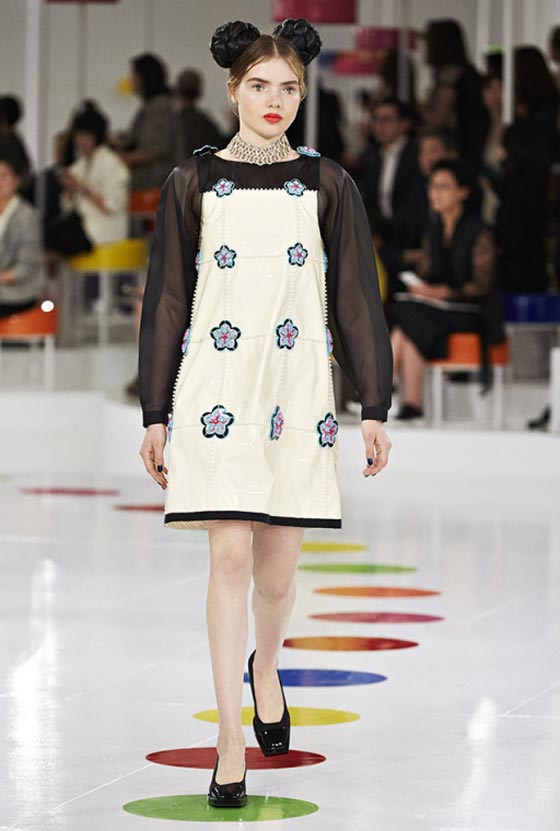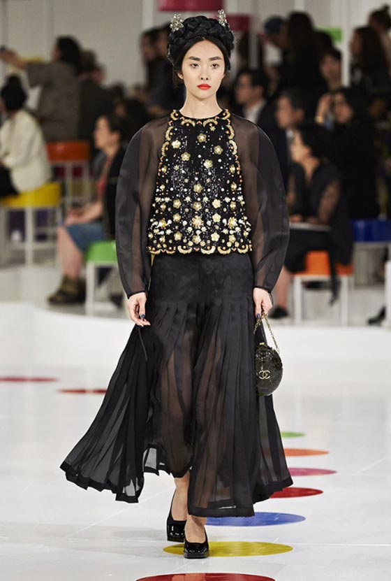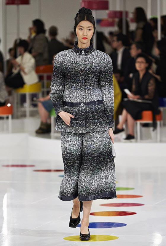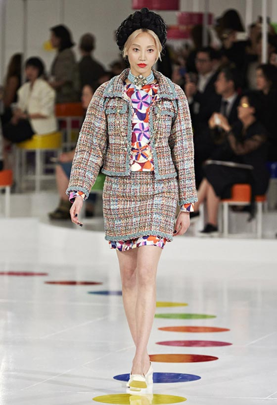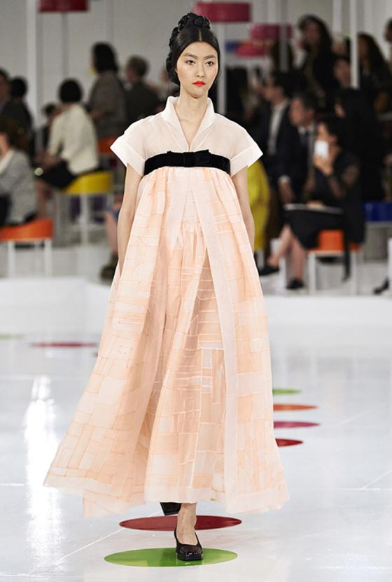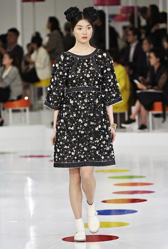 هذا اللباس التقليدي شكّل مصدر وحي أساسيا لما تضمنته المجموعة من فساتين واسعة زيّنتها قصّة تحت الصدر وتزيّنت بطبعات مرحة وتقليمات ملوّنة، وحتى سترة Chanel الشهيرة اكتست بهذه المناسبة بلمسات من الحضارة الكورية. أما الأحذية فجأت جميعها بكعوب صغيرة ومقدمات عريضة واستوحيت من الأزياء الكوريّة التقليديّة. تعرّفي فيما يلي على بعض ما تضمّنته هذه المجموعة من تصاميم.