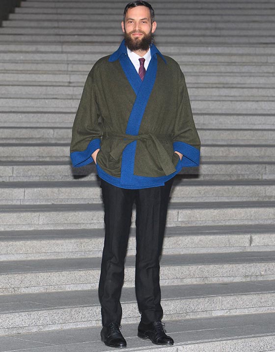 ساندرو كوب اختار معطف بلوني الكاكي والأزرق من مجموعة Paris-Salzburg 2014-2015.