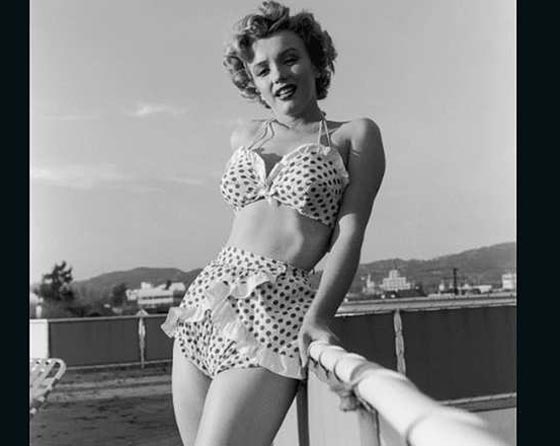 الممثلة الأمريكية المشهورة مارلين مونرو بثياب البحر في العام 1953