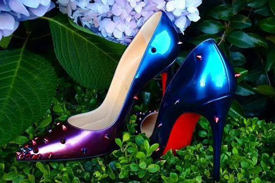 في الصورة حذاء أنيق مصمم من الجلد اللماع ومزدان بستراس مدبب من توقيع كريستيان لوبوتان Christian Louboutin.