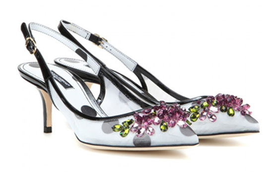 حذاء أنيق ومريح بكعب متوسط الطول وكريستالات ملونة تزينه من الأمام من توقيع دولتشي اند غابانا Dolce & Gabbana.