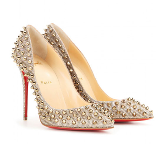 حذاء فاخر مزدان بستراس ذهبي مدبب من توقيع كريستيان لوبوتان Christian Louboutin.
