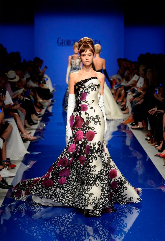 أثواب الكوكتيل لفتتنا بخصرها الرفيع وتنانيرها المتمايلة التي تبرز حركة الأقدام بكل أناقة، أما الأثواب الطويلة فتزينت بذيول متدلية من الخلف وفتحات جانبية من الأمام. وقد ترافقت جميع الإطلالات مع قفازات طويلة من الساتان الأبيض أو الأسود وأقراط للأذنين أضافت لمسات أرستقراطية على الأزياء التي تم تنفيذها بأقمشة الكريب، والكازار المطبع، والتول المنقط بالزهيرات، والدانتيل المشكوك بالأحجار، والمخمل المطرز، إضافة إلى أقمشة براقة فضية أضفت لمسة عصرية على الإطلالات.