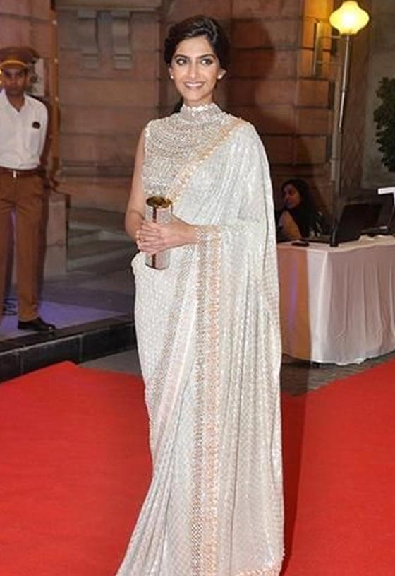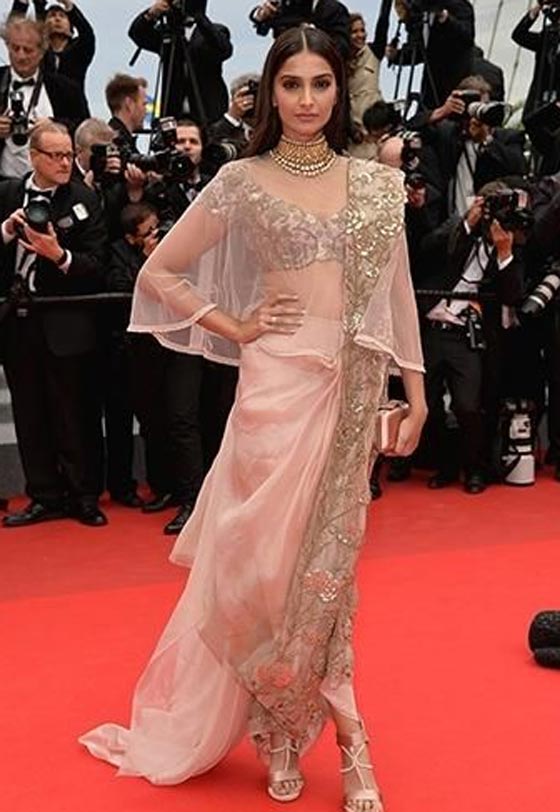ننتظر مهرجان كان السينمائي في كل عام لنشاهد إطلالات سونام كابور بالساري الهندي على السجادة الحمراء، إذ تتميز اختياراتها بالفخامة ودقة التفاصيل وتحرص على تنسيقها بأسلوب أنيق ومتناسق، وتنافسها إطلالات النجمة أشوريا راي في نفس المهرجان حيث تختار أجمل تصاميم الساري الهندي لحضور هذا المهرجان العالمي بالتحديد. اخترنا منها إطلالتها بالساري الذهبي البراق في إحدى حفلات المهرجان .