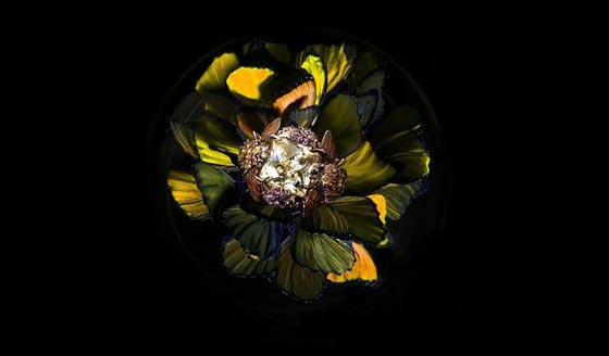 عقد "دلفين": بحسب تشان، صمم ملمس سطح كل واحدة من البتلات الذهبية لتطابق ملمس صدفة وجدتها تشان في أحد شواطئ هاواي. وتقول المصممة، "الأمر الذي أحببته حول هذه الصدفة هو الخطوط المستقيمة التي تغطيها، مثل عروق أوراق النباتات".