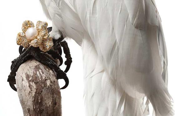 "نيبينثيسونيوم": كما تضيف تشان: "بعد مراقبة الطيور في البرية، أقوم عادة بعمل رسم وتلوين الطيور التي تلهمني.. ومن بعدها أقوم برسم المجوهرات التي أستوحيها من هذه الرسمات الأولية، وأختار لكل عنصر الحجر الكريم أو المادة التي تناسبه".