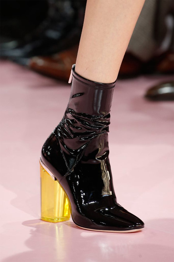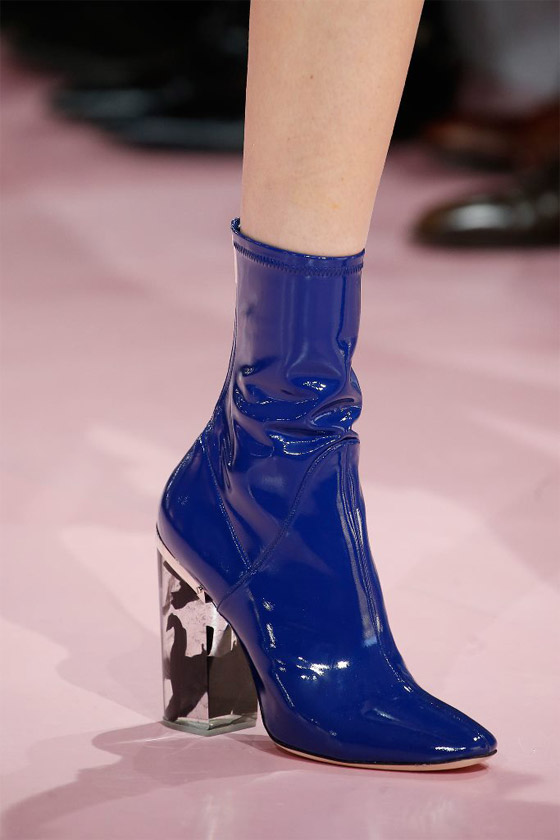 اللمسات الفنية كانت بارزة بشكل لافت في أكسسوارات Dior الخاصة بموسم خريف 2015، حيث تميّزت بألوانها الجريئة حيناً والغريبة حيناً آخر، وبموادها العصرية التي ستضفي طابعاً متجدداً على الأناقة في الموسم المقبل. الأحذية المصنوعة من الفينيل كانت العنصر الأبرز في هذه المجموعة، وقد اكتست باللمعان وتلوّنت بالأسود والأحمر والأزرق، كما غزتها الطبعات في بعض الأحيان. وهي توفرت بطول يصل إلى الكاحل وآخر يصل إلى أعلى الساق، وتميّزت بكعب عريض مصنوع من مادة شفافة.