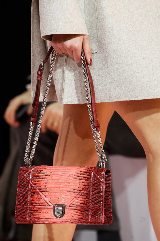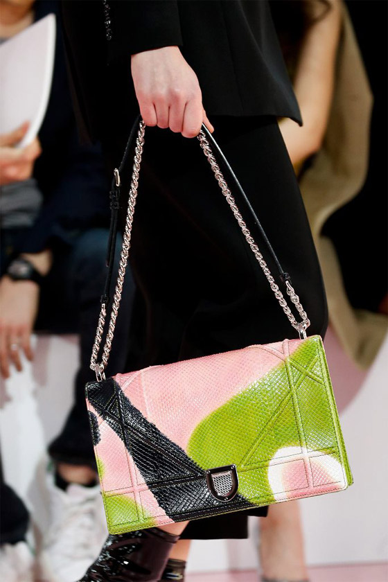 أما بالنسبة للحقائب، فقد تنوّعت بتصاميمها وغزتها الطبعات والألوان أيضاً. وقد تكرّر ظهور حقيبة Diorama التي تجمع بين الطابعين العصري والكلاسيكي في تصميم واحد، مما سيجعل منها إحدى الحقائب المفضلة لدى النساء هذا الموسم. كما شهدنا عودة حقيبة Lady Dior بطلّة متجددة.من الأكسسوارات المميزة أيضاً في مجموعة Dior للخريف والشتاء المقبلين: العقود المصممة على شكل ياقات والنظارات الشمسية التي تميّزت بإطارها المرقّط وزجاجاتها الملوّنة. فما هو أكسسوارك المفضل من Dior للموسم الجديد؟